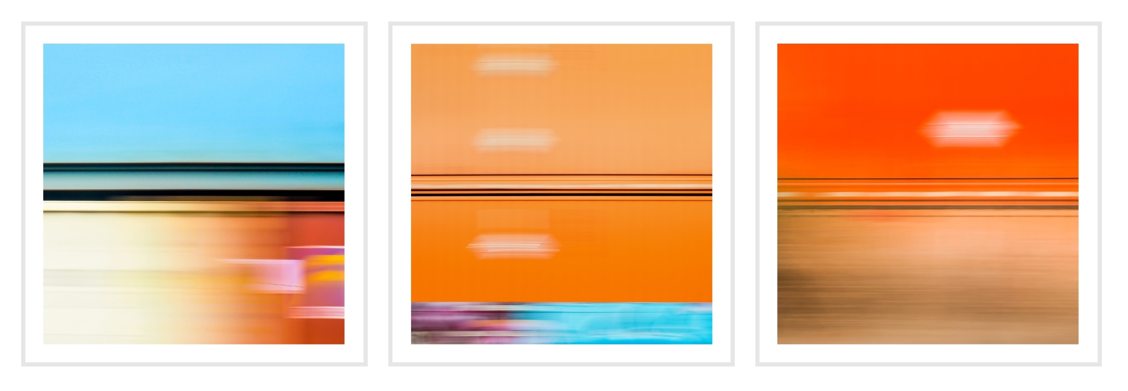 Her recent work focuses almost exclusively on creating abstract images of freight trains running through the far west Texas desert in Marfa, capturing their visceral drama. Drawn to movement—trains, shifting light, passing forms—she rejects the tradition of photography as a fixed instant, instead using long exposures and in-camera techniques to “paint” with light and motion. The ethereal quality of these works results from experimental processes that push the medium toward abstraction, creating images that reverberate with physicality, immediacy, and a deep sense of time and place.